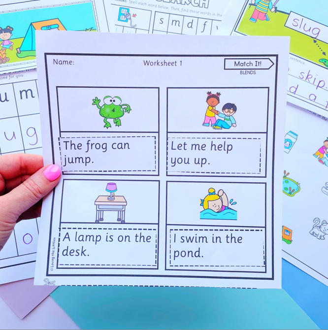 - Match It! – Students read sentences containing blends and match them to the corresponding picture.