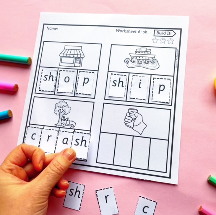 Prep/Kindergarten teachers, are your students ready to spell words that contain digraphs or double consonants? Built It! – Digraphs is the resource you need. With 20 worksheets included, students cut out the letters and spell (or build!) the four pictures. They are an engaging (and no prep) activity to help your budding spellers. Perfect for centres, small group work, independent work or fast finishers, these build-a-word worksheets are a must for a Kindergarten classroom.