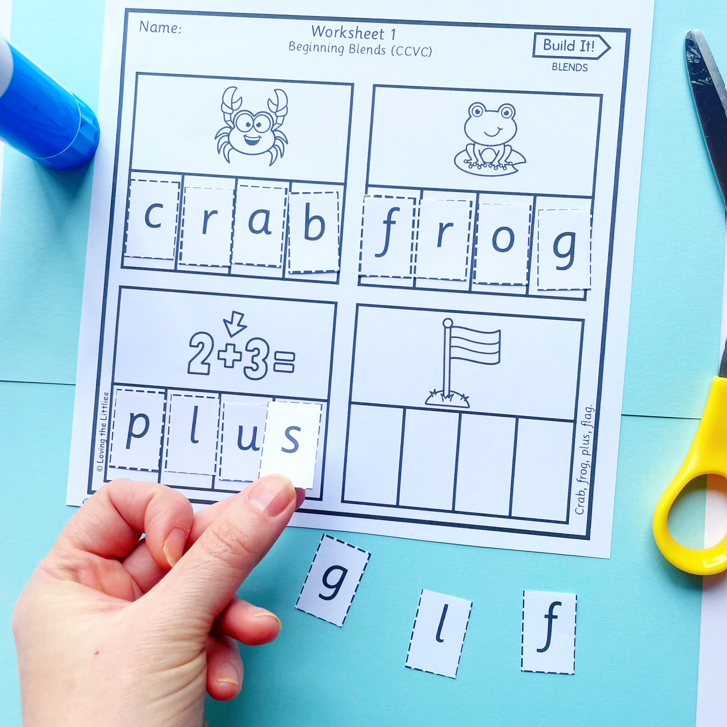 Build It! Prep/Kindergarten Beginning & Ending Blends Worksheets | CCVC & CVCC Spelling