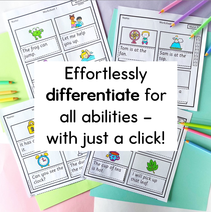 Match It! helps students decode and comprehend sentences, offering a perfect balance of reading and understanding in one activity.