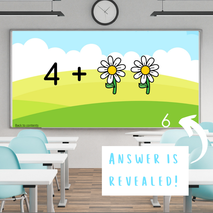 - Each slide includes a starting digit to count from, plus pictures for the students to count on with