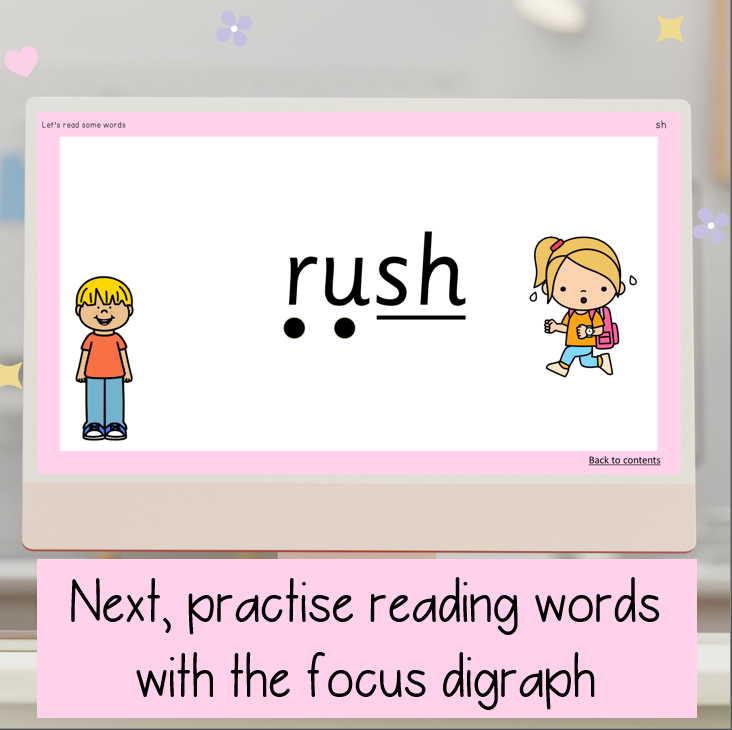 These done-for-you slides are perfect for explicitly teaching your students about digraphs and double endings (FLSZ rule). With 12 digraphs included, students will learn about the sound of the digraph, practise reading words and practise spelling words containing the focus digraph. Perfect for whole class teaching or small group work, simply work through the slides with your students. It’s all been done for you!
