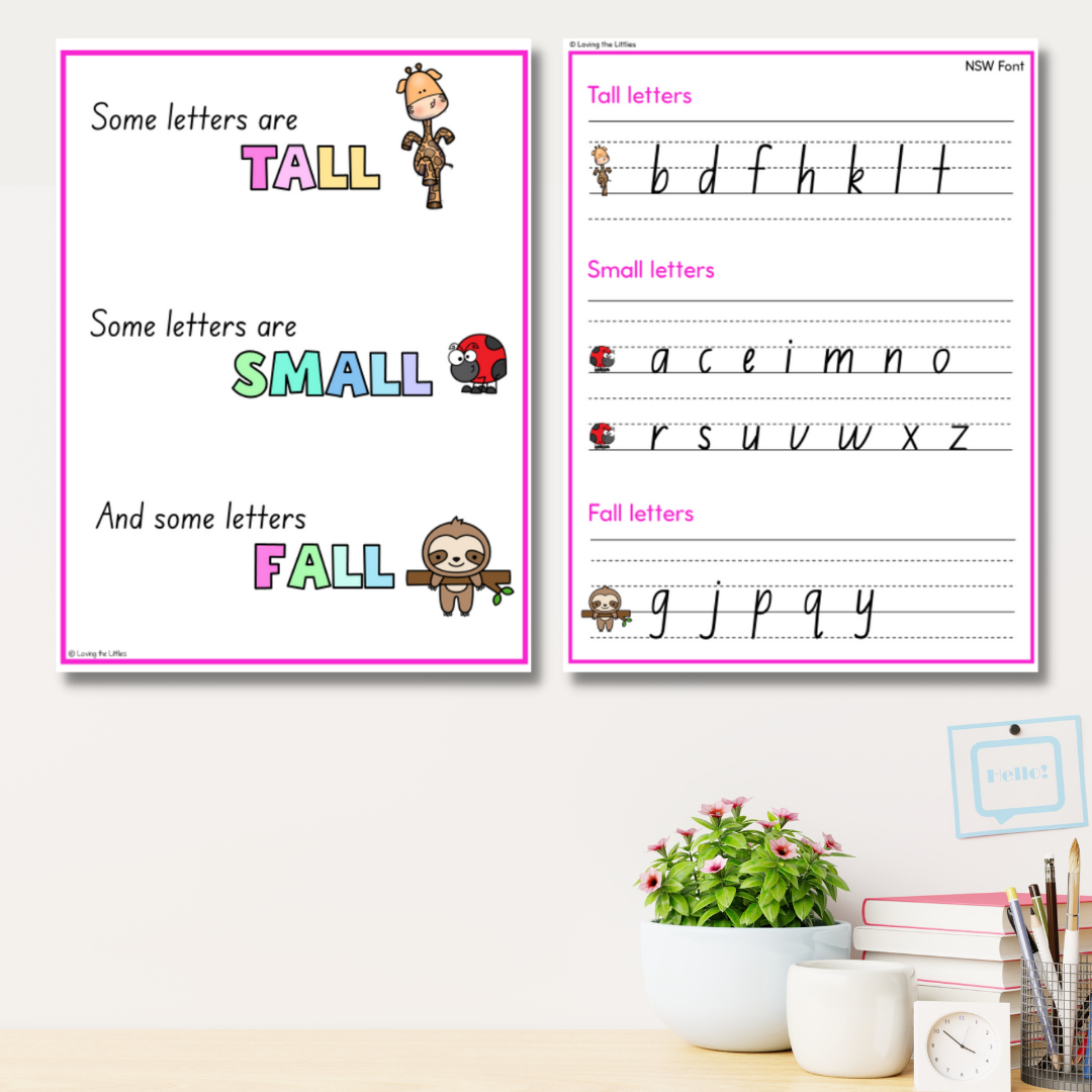 - Classroom Posters – Display these posters in the classroom or in the writing centre to remind students that some letters are tall, some are small and some letters fall.