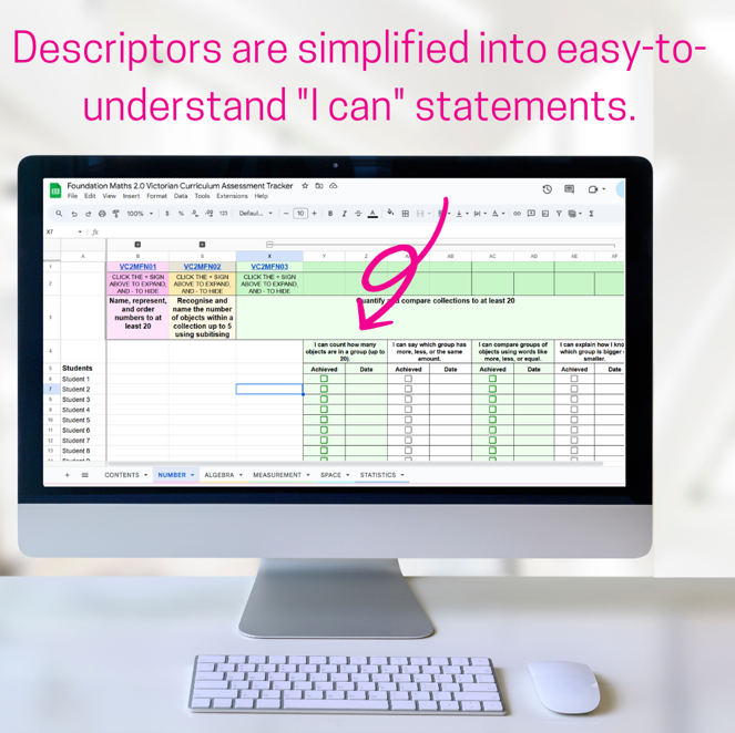 Google Sheets | Victorian Curriculum Foundation Maths 2.0 Assessment Tracker