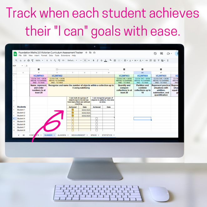 - Tailored for Victorian Foundation Teachers: Focussed on the Maths 2.0 curriculum, this tracker is ideal for Foundation teachers looking to stay on top of student progress.