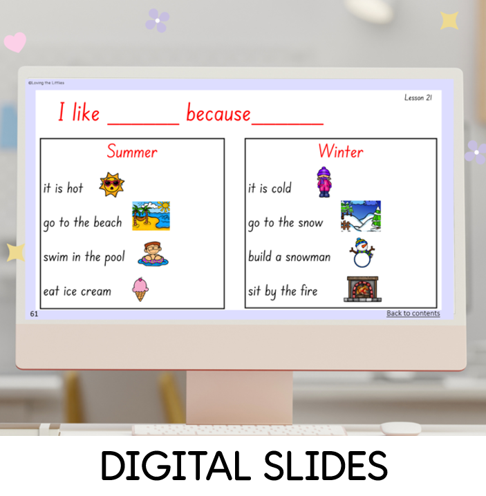 - Writing sentences using labelled pictures: Over 4 lessons, students use labelled pictures to write sentences. With a range of sentence starters provided, students are supported and encouraged to write as many sentences as they like!