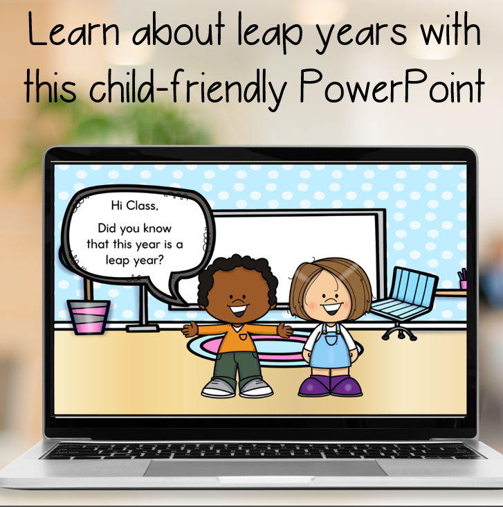 - A 45 slide PowerPoint presentation is included, which teaches about leap years in a child-friendly way
