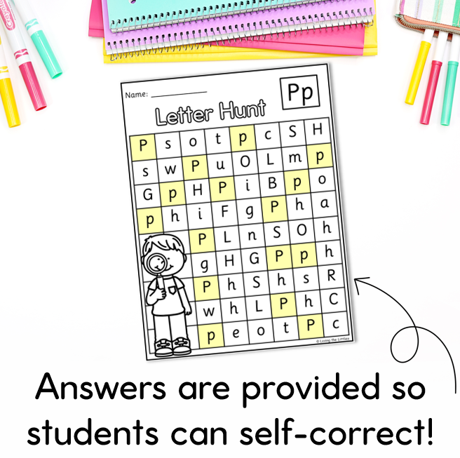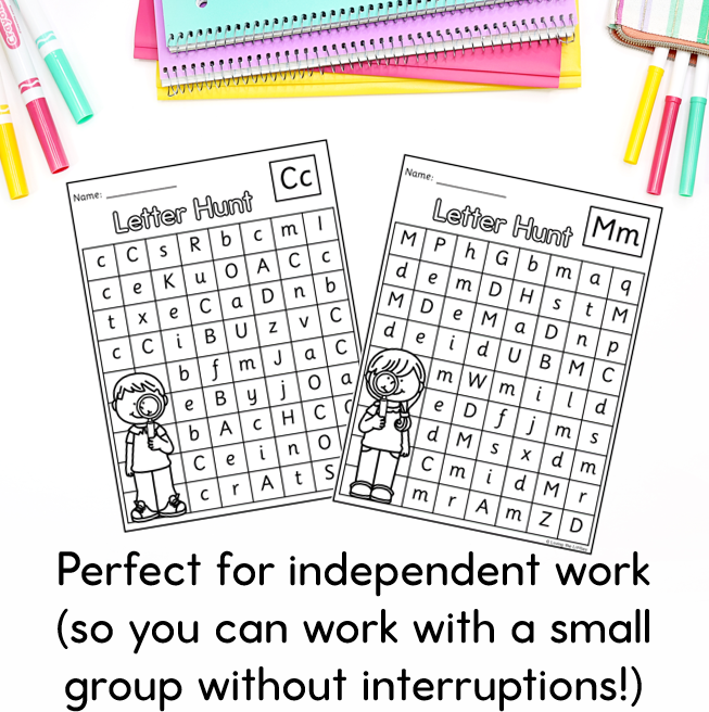 26 Find It!-Alphabet worksheets – One for every letter of the alphabet! In each letter hunt worksheet, students need to find and colour all the uppercase and lowercase letters of the target letter.