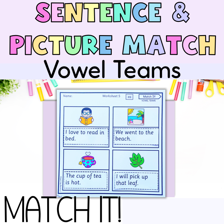 Match It! Vowel Teams Sentences & Picture Matching Worksheets | Long Vowels