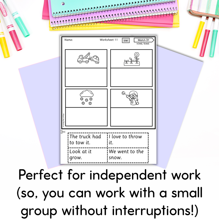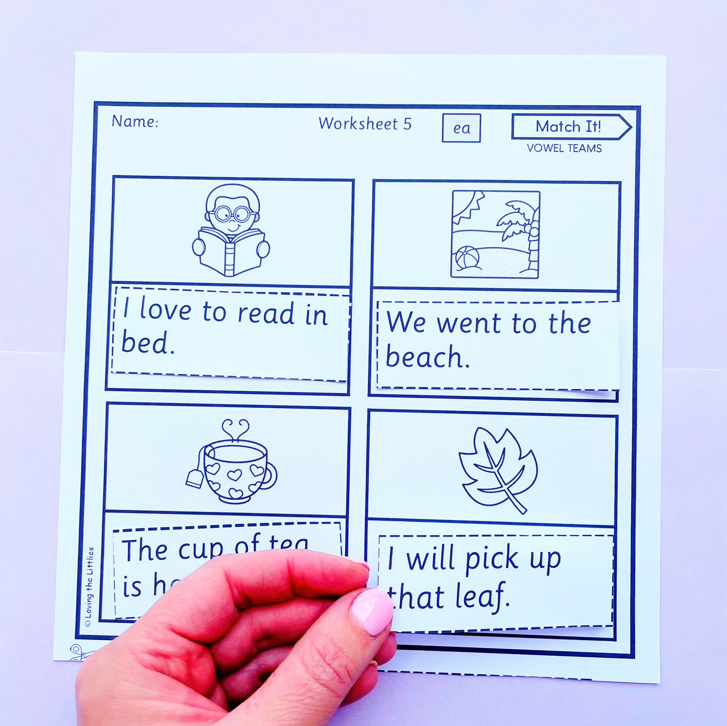 Are you looking for a simple yet powerful way to help your students master reading sentences with long vowel spelling patterns? Match It! – Vowel Teams is just what you need. This carefully crafted set of 15 worksheets follows a clear scope and sequence, guiding students as they read four sentences per sheet and match them to the correct picture. These engaging, no-prep activities are perfect for independent work, early finishers, learning centres, or small group practice. Match It! – Vowel Teams is a must-have resource for budding readers.