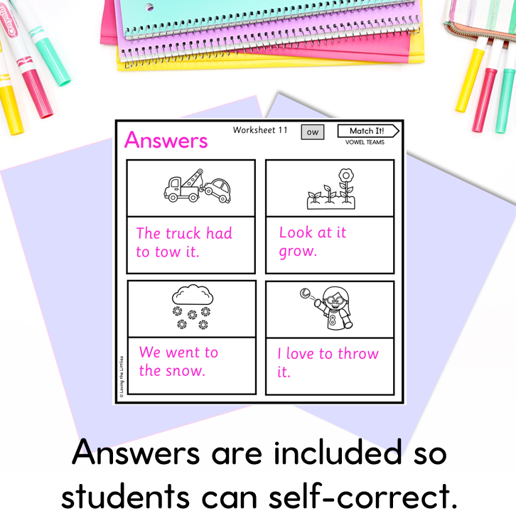 · 15 Match It! -Vowel Teams worksheets are included. Give your students the worksheets that have the spelling patterns that they have learnt or need further practise with.