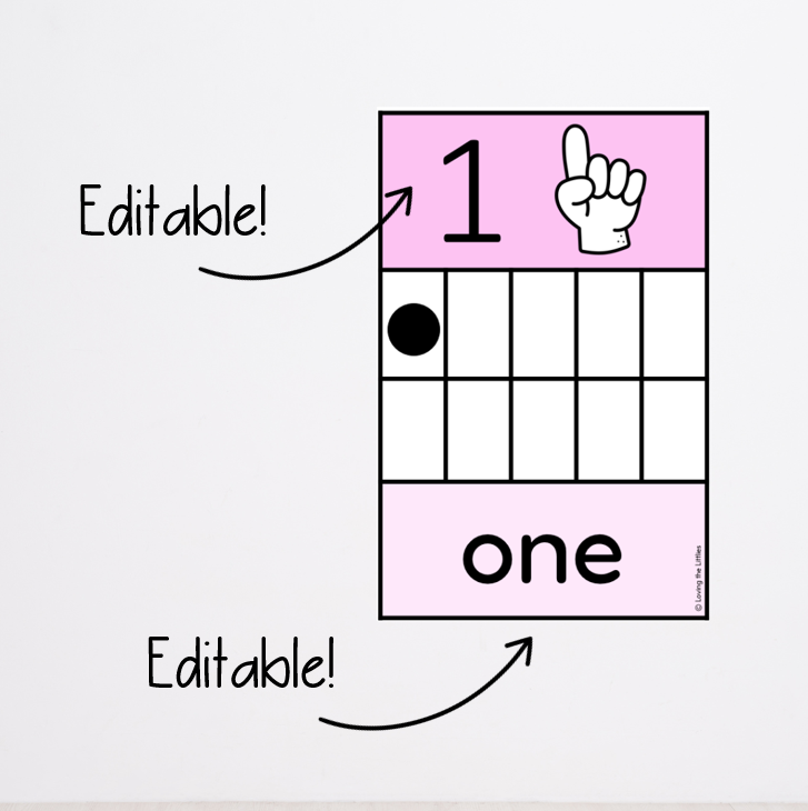 Whilst the digit and word on each poster can be edited, the clip art has been flattened and secured so is not editable.