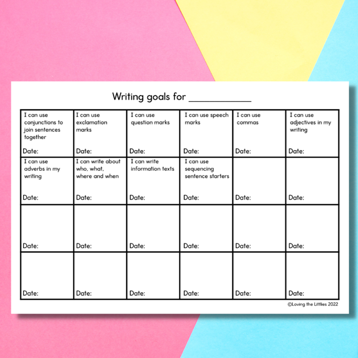 - There are different ways you could use this resource. But one suggestion is to paste the goals on the inside cover of your students writing book. That way they are always close by.